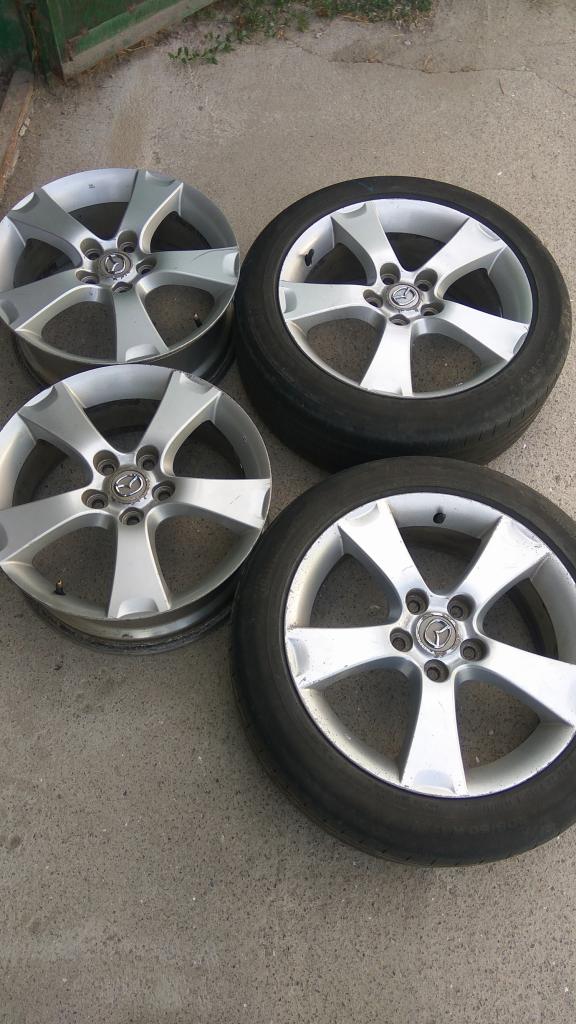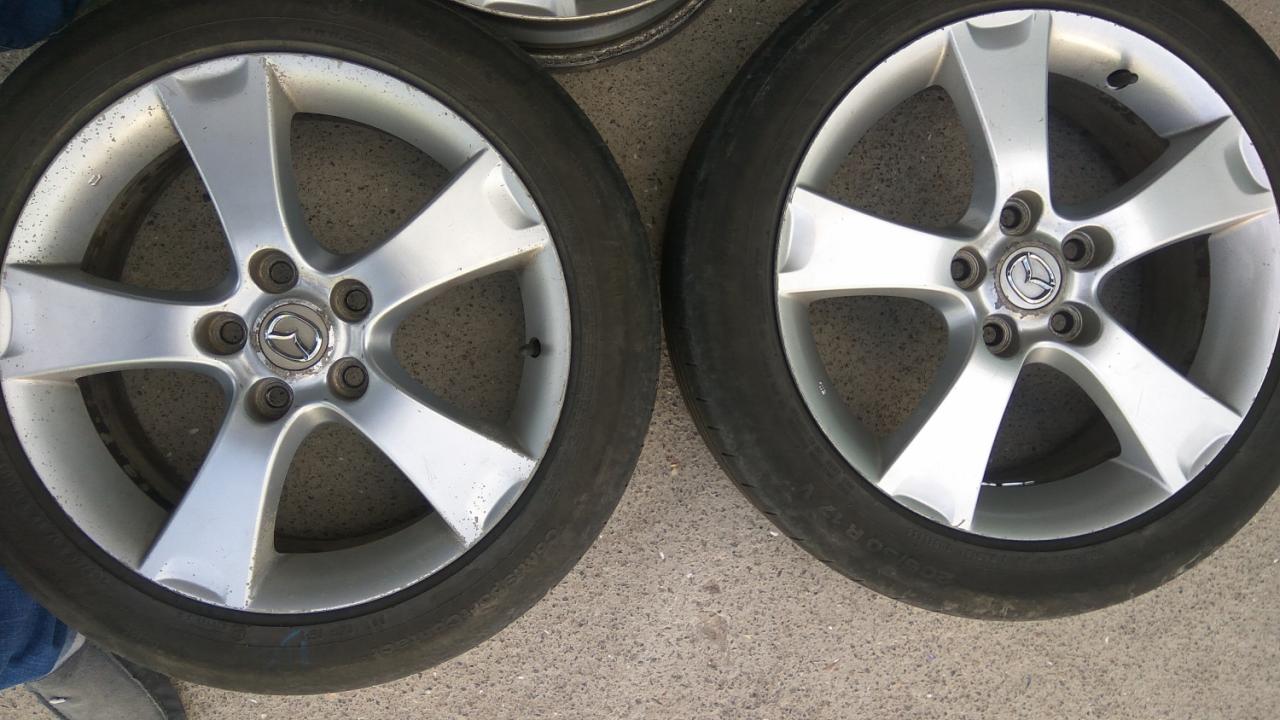 Диски Оригинал Mazda 3 5 6 R17 5*114.3 ширина 7 дюймов, вылет ET 52.5 подходят также на все японские авто, не вареные,ровные, в оригинальной краске (есть царапины)пара резины континенталь спорт контакт 5 отдам в нагрузку на допил)