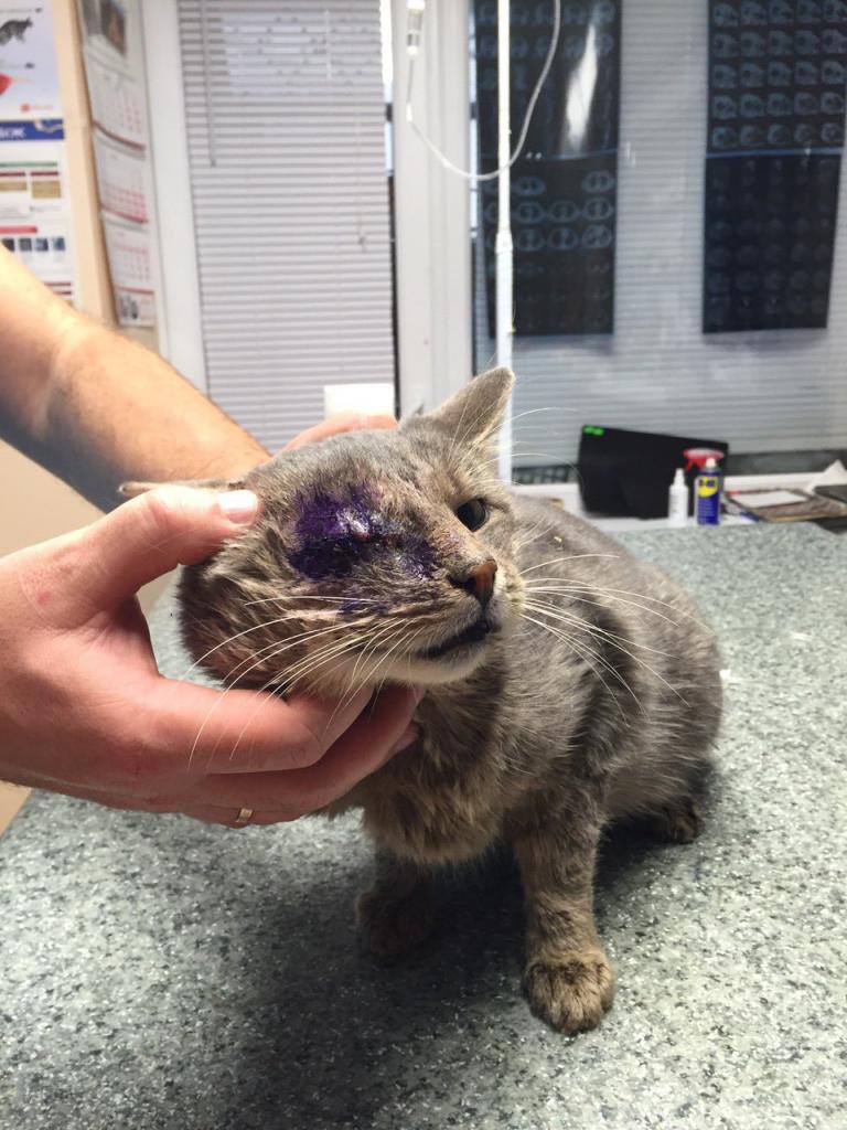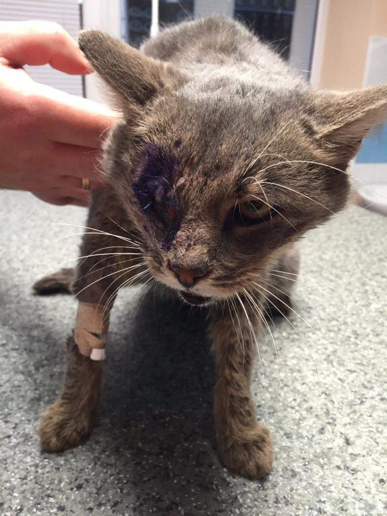 Сегодня, 18.11.2016г.(утром), в районе Французского бульвара был найден бездомный кот, с рваной раной на голове и вытекшим глазом. Кот очень ослаблен, видно, что не ел несколько дней, самостоятельно питаться уже не может. Кот срочно был доставлен в ближайшую вет клинику "Лесси" по адресу ул. Черняховского, 13. После осмотра, врач сказал, что коту срочно нужна операция по удалению глаза и вычищению гноя из раны и послеоперационная реабилитация. Счёт за операцию 850грн., плюс послеоперационный уход 350-400грн. в сутки. Операцию сделали в долг, т.к. у меня просто нет сейчас денег, а оттягивать операцию было нельзя. Врач мне поверил, но деньги нужно принести в ближайшее время. Т.к. у меня ещё долг в 1500грн. по котятам из этой темы