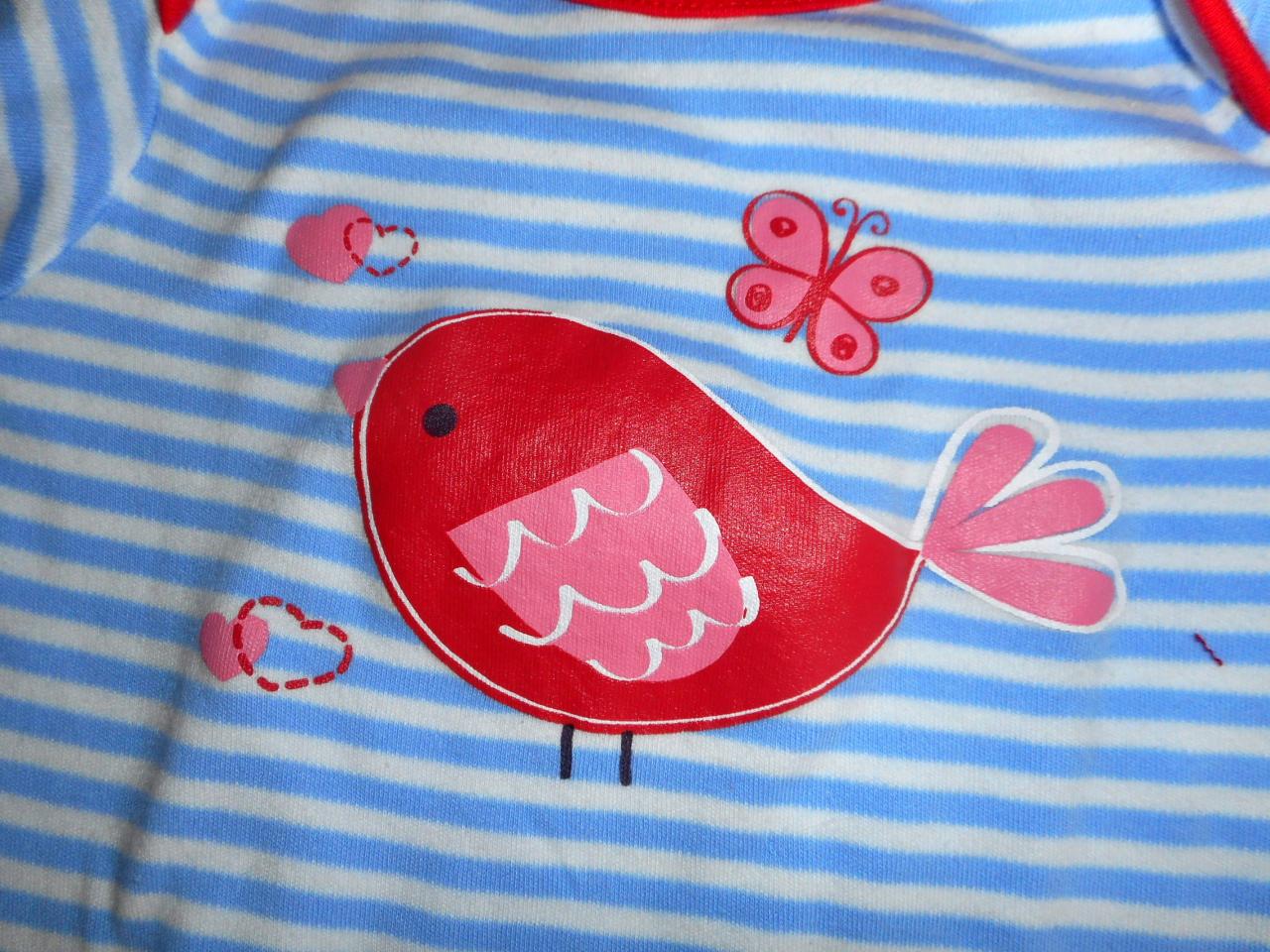 - первый в цветочек (он же на следующем фото) - 56-62 (0-3); красный - 3-6мес; 6-9мес (68-74); белый маечкой - 12-18мес (80-86)
