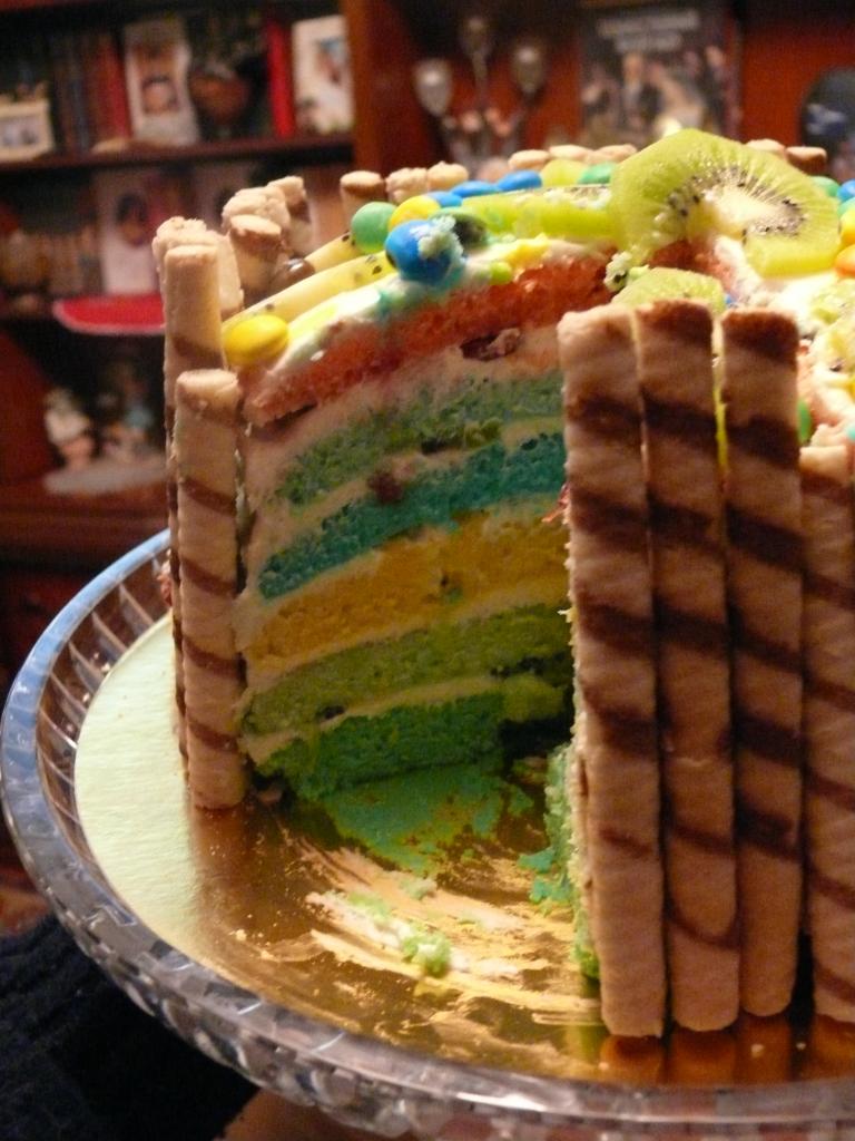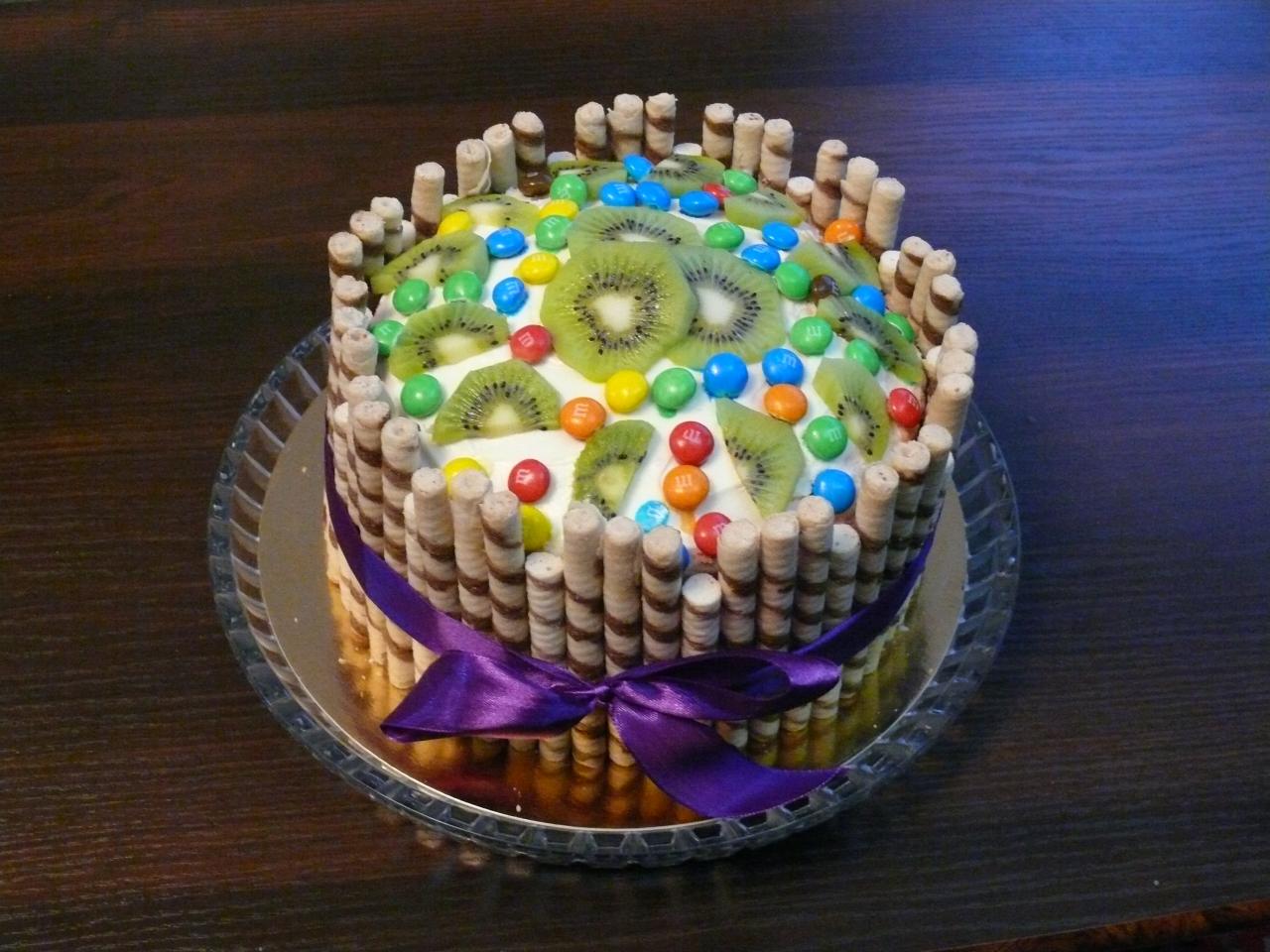 Торт "Радуга" (с фруктами киви,апельсин,вишня,ванильно-сливочный крем)