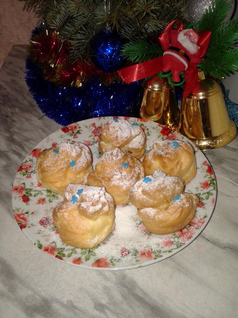 Заказывали у Елены заварные пирожные и бисквитный рулет.