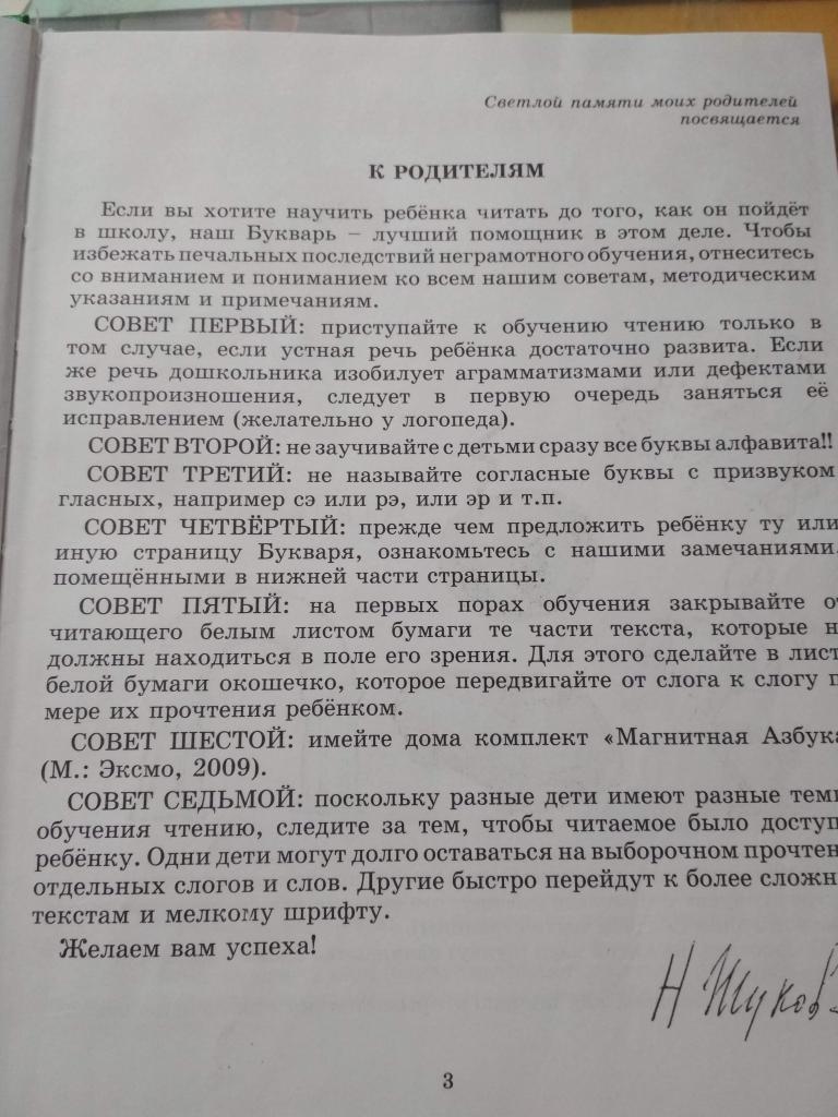 При составлении Букваря автор использовал свой 30-летний опыт работы логопеда, что впервые позволило сочетать обучение грамоте с предупреждением ошибок на письме, возникающих в школьном возрасте. Букварь основан на традиционном подходе к обучению чтению на русском языке, дополняя традиционный подход оригинальным способом обучения ребенка осознанию буквосочетания как цельного графического элемента ― слога в качестве единицы чтения (в дальнейшем письма). Букварь не имеет развлекательного или занимательного характера, его задача ― обеспечить ребенку наибыстрейшее овладение техникой чтения, что должно доставить детям радость и удовольствие в награду за труд. Надеемся, что наши дети, овладев без особых затруднений чтением, возьмут в руки книгу как орудие культуры и источник знаний. Нажмите на изображение для увеличения