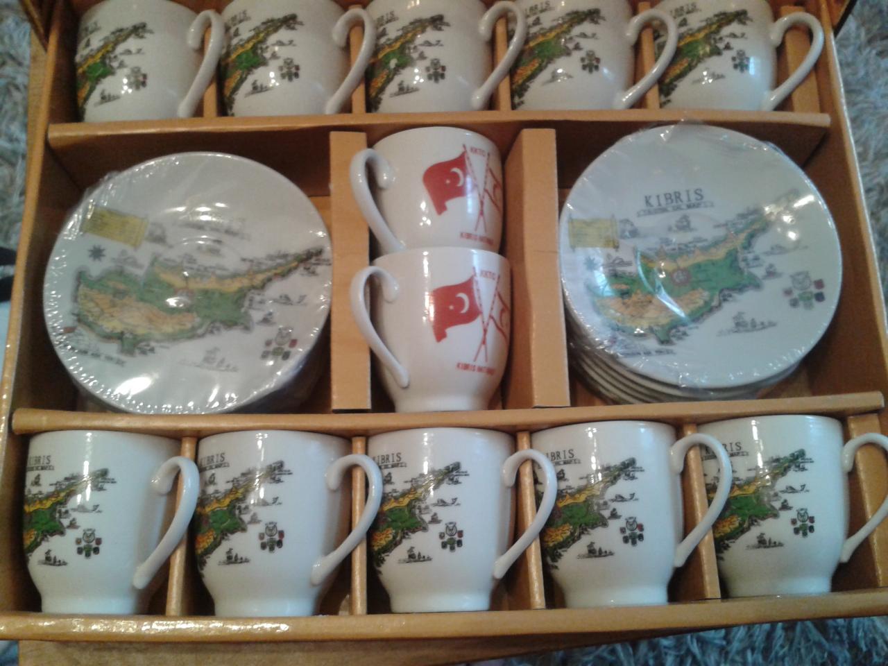 Кофейный сервиз на 12 персон "Кипр" в подарочной упаковке. На чашках с одной стороны карта Кипра, а с другой флаг Кипра.