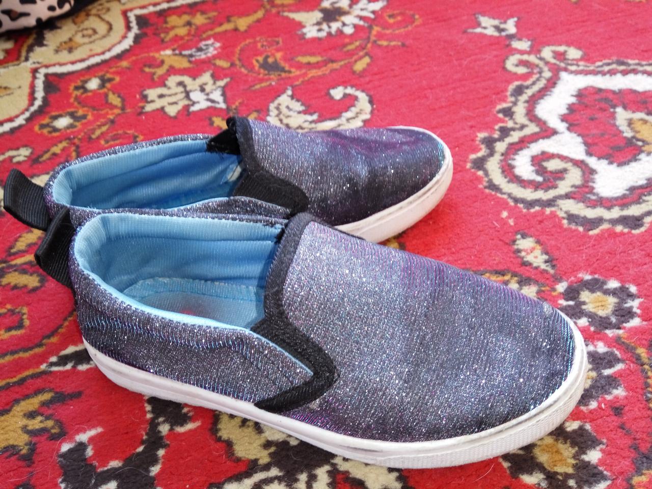 Слипоны-хамелеоны,переливаются разными цветами,смотрятся на ножке аккуратно и обалденно.Очень удобные и легкие.Размер 32,по стельке 20 см.Одели несколько раз и ножка выросла.Продам за 100 грн.Тел 097-368-07-18.Марина.