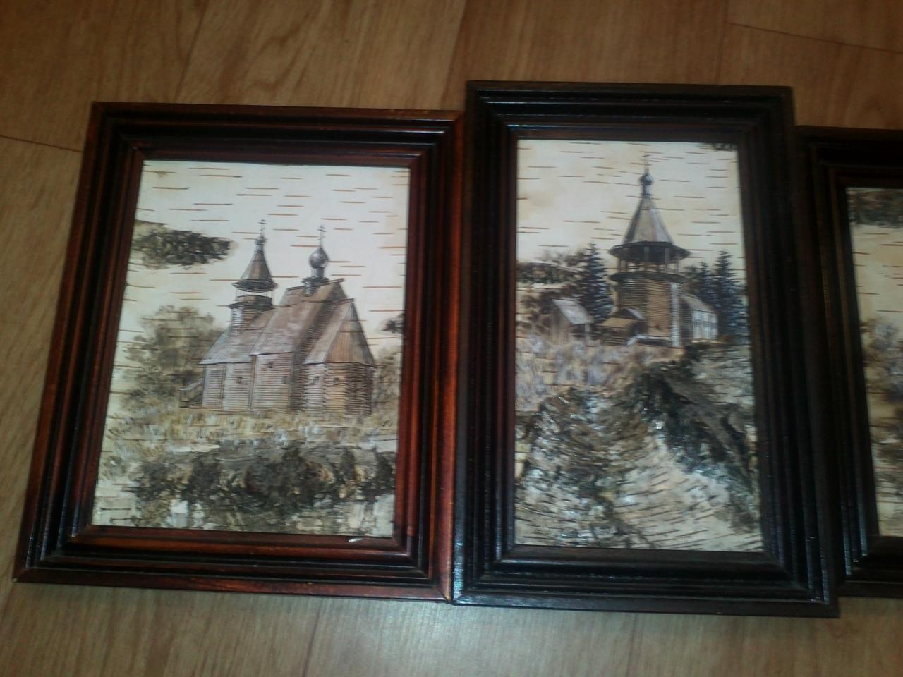 4 картинки на бересте (березовая кора), размеры с рамкой: