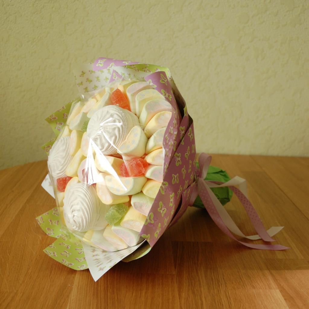 Любителей зефира,мармелада и маршмеллоу можно порадовать вот такими необычными букетиками. Стоимость от 200 грн.