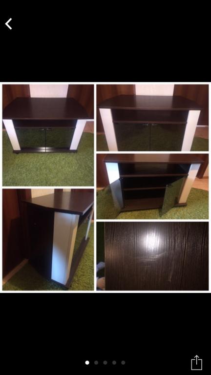 Здравствуйте. Не совсем понятно по фото: какой цвет: черный, коричневый и белый и жёлтый?... Дверь стеклянная? И это фото такое или потёртости на боку?