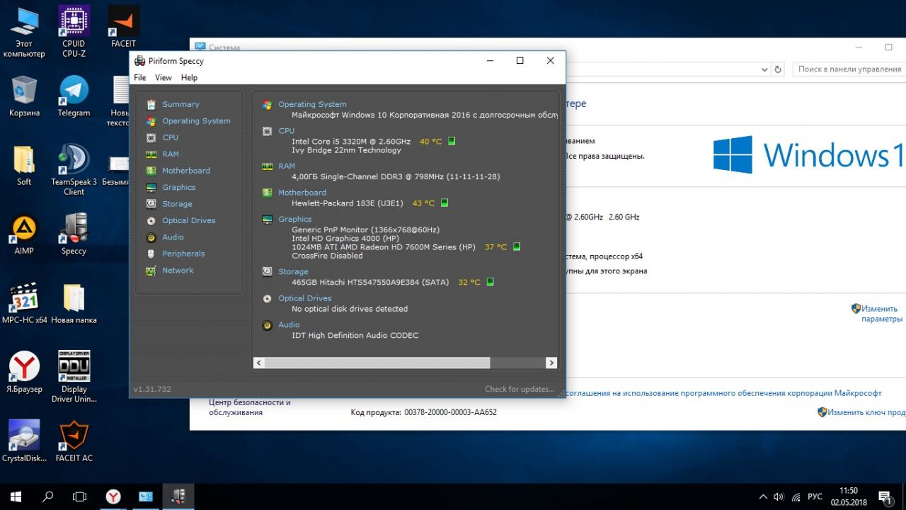 Процессор: Intel Core i5-3320m 2.6-3.3 Гц(2 ядра,4 потока) (Это те же 4 ядра.Технология intel Hyper Threading)