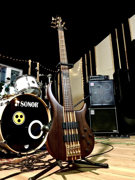 Гриф - орех с переклейками из клёна, сквозной.