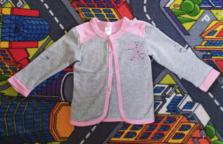1. Кофточка серо - розовая на кнопках хлопок 74 р