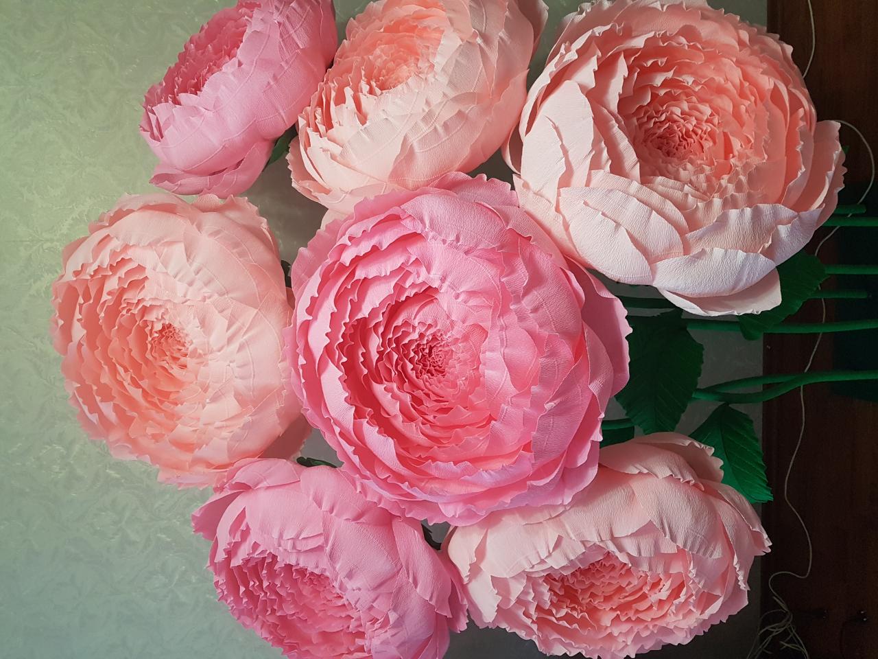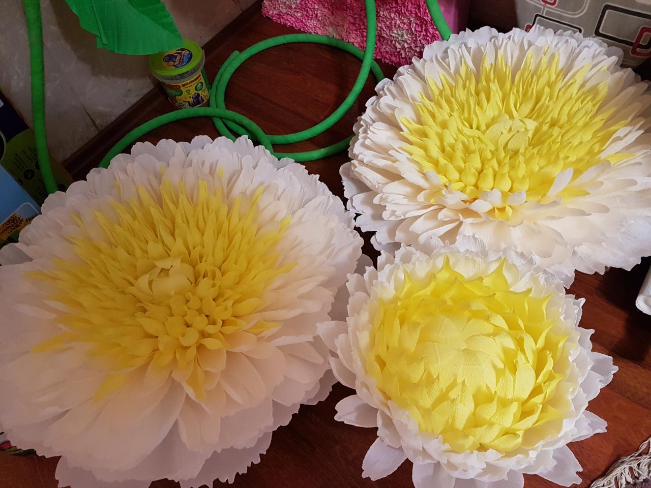 Изготовляю большие бумажные цветы для декора: пионы, розы, хризантемы. Такие цветы станут прекрасным украшением любого праздника. В наличии есть стойка из семи пионов двух оттенков розового. Высота композиции 190 см., ширина 160 см., диаметр каждого цветка 50 см. Аренда - 1300 грн. в сутки., продажа 3300 грн.