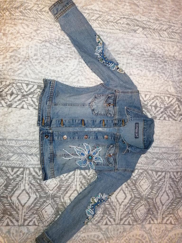 Тема: Джинсовая курточка с вышивкой и пайетками 122-128