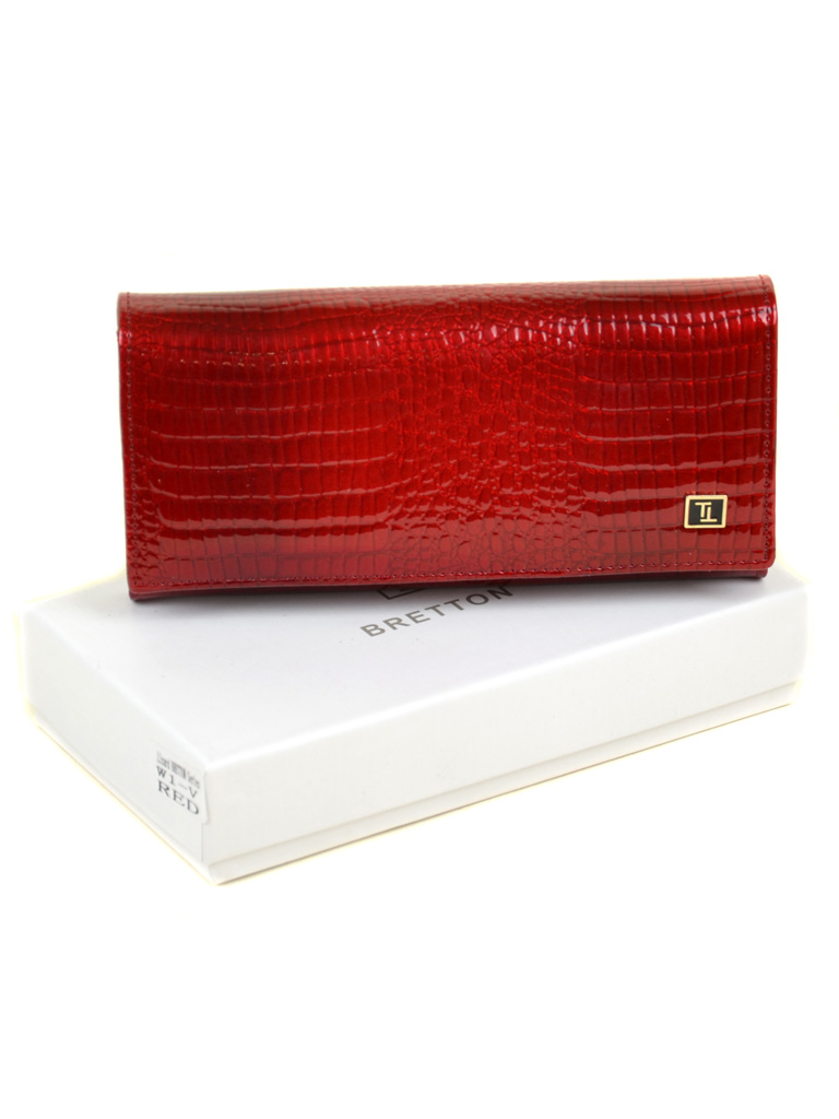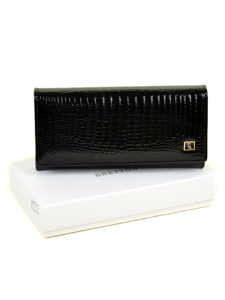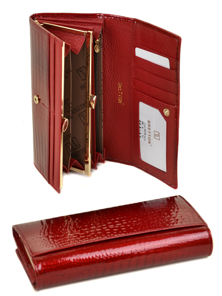 Под клапаном находятся 3 открытых отделения для банкнот, двойная монетница на защелке, 8 закрытых и один прозрачный карман для карт, большой карман на молнии и открытый карман. Снаружи кошелька на обратной стороне есть плоский открытый карман. Размер (см.) 18,5*9,5*4