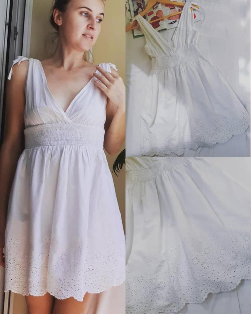 Летнее хлопковое платье с модной в этом сезоне набивной вышивкой. Лекая и натуральная ткань жарким летом носится с огромным удовольствием. Есть хлопковый подьюбник. Спинка немного открыта. Класный вариант как для города на каждый день так и на курорте. Благодоря резинке на талии подойдет на любой обьем.