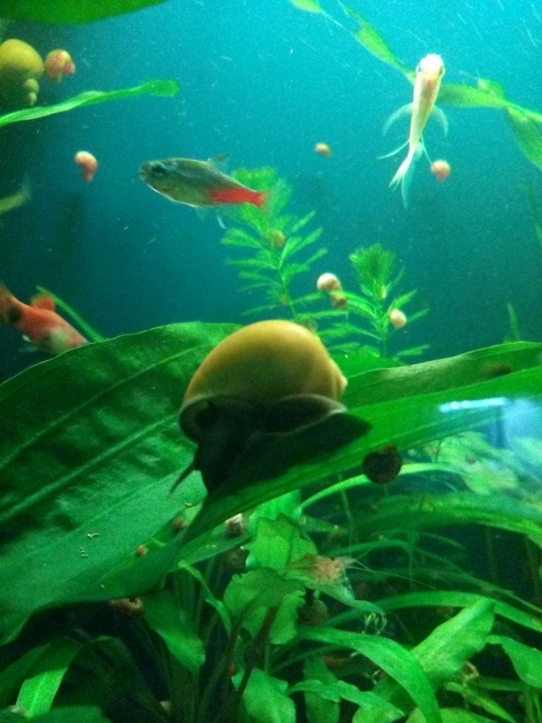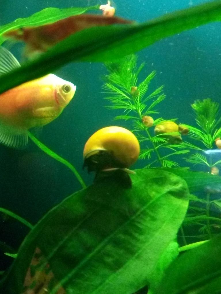 Так же есть парочка взрослых ампулярий(жёлтые) активно выкладывают кладки.
