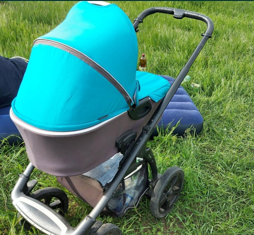 Коляска в хорошем состоянии,очень удобная и мягкая. Состоит из люльки для младенца и сиденья прогулка.