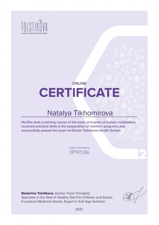 Я – сертифицированный инструктор - нутрициолог, с опытом работы более 7 лет.
