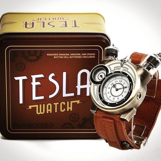 Гротескные, ретрофутуристичные наручные часы Tesla Watch. Отдавая дань великому изобретателю Николе Тесла, специалисты создали эффектные наручные часы, выполненные в популярном стиле стимпанк.