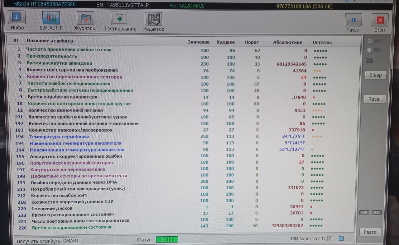 -Состояние видно по скринам теста и smart.(Есть логи теста)