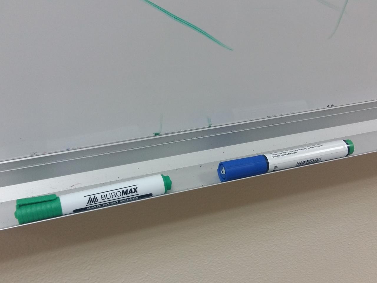 6. Из средств визуализации подаваемого материала есть доска и два маркера: зелёный и бледно-зелёный, но с синим колпачком! http://static.forumodua.com/attachment.php?attachmentid=11640886&d=1478455983&thumb=1&stc=1