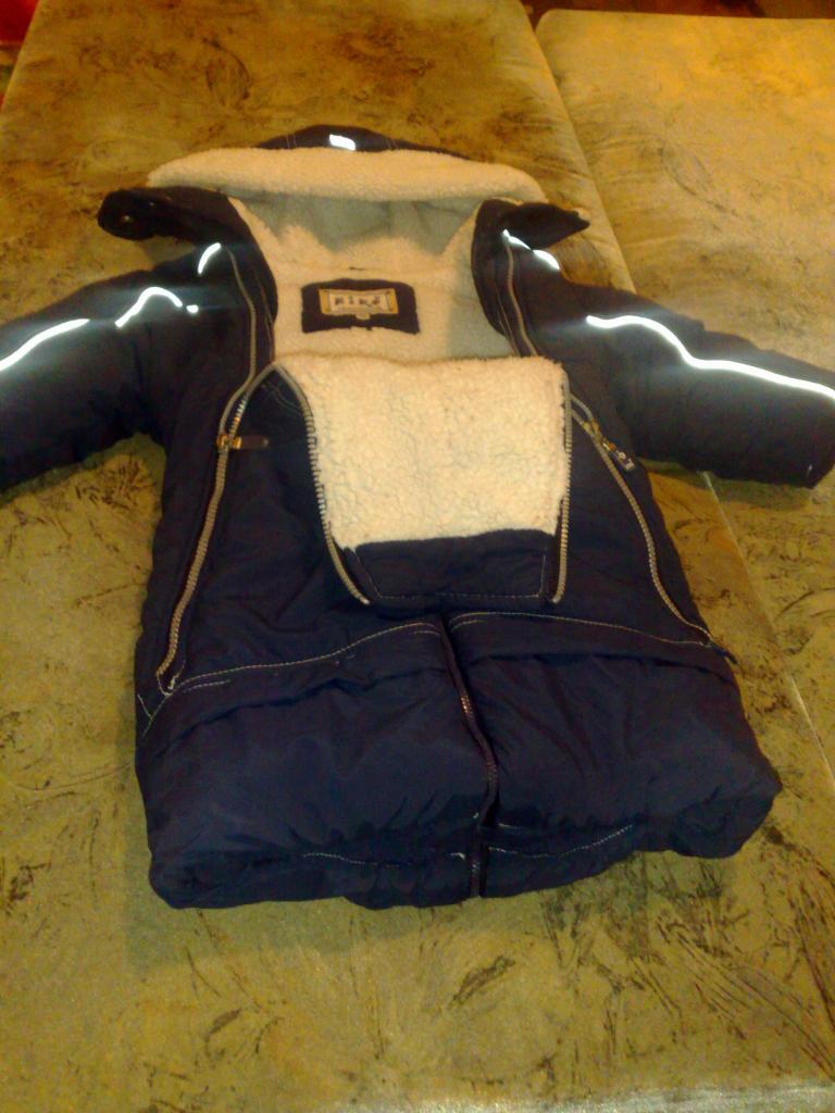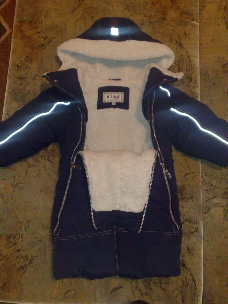 Продам детский зимний комбинезон-трансформер (конверт) фирмы "Kiko", подкладка шерсть, цвет темно-синий, в комплекте идут пинетки-ботиночки и варежки, вверху хорошо закрывает шею, с рождения до 2х лет.