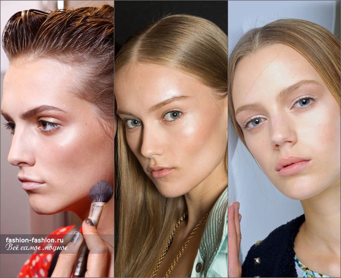 В отличие от прошлых сезонов, когда для создания nude look использовался минимум косметики, в этом сезоне минимализм не подразумевает иллюзии отсутствия макияжа. Сияющая кожа, тонко очерченный контур ресниц и естественный румянец – составляющие актуального макияжа в стиле минимализм.