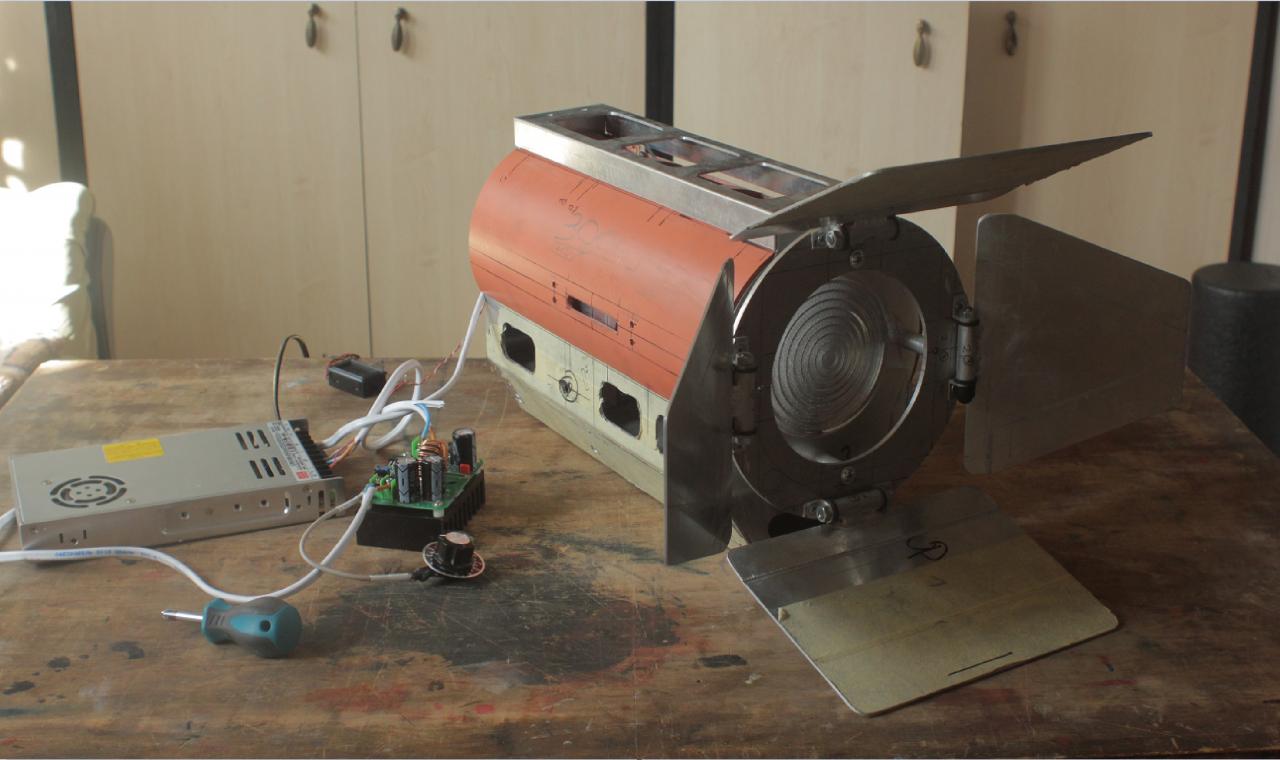Я в процессе изготовления профессионального прожектора для видео и киносьемок. Это уже вторая модель прожектора которую я взялся создать. Первый прожектор я сделал уже года 2 назад, до сих пор он благополучно справляется со своей задачей. Однако новый прожектор конструктивно и технически более совершенный, в нём исправлен ряд проблем первого изделия.