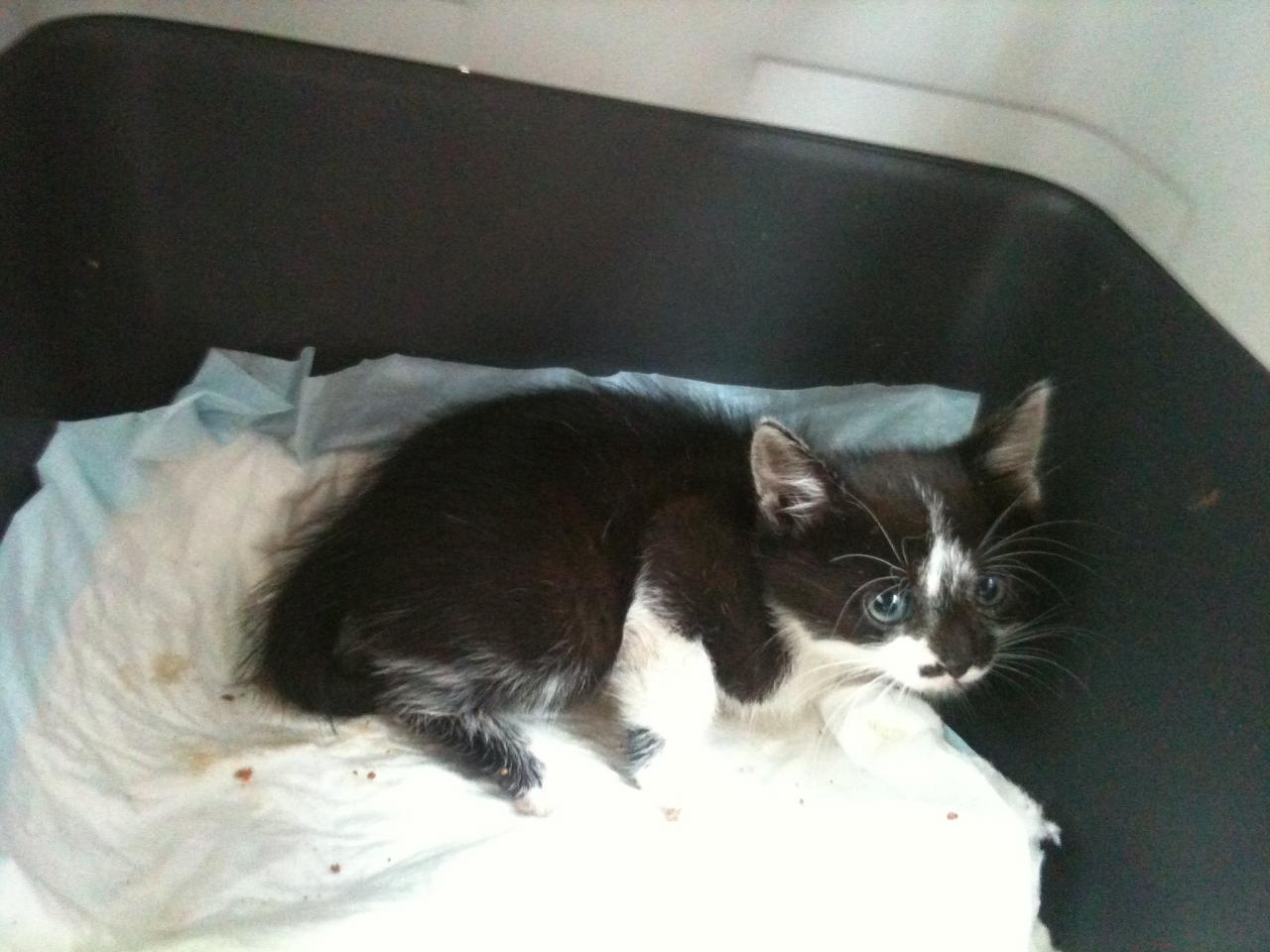 Сегодня в районе 6,5 ст. Б.Фонтана (Петрашевского) подобрала котёнка 1 мес- 1,5 мес. Пол не определила.