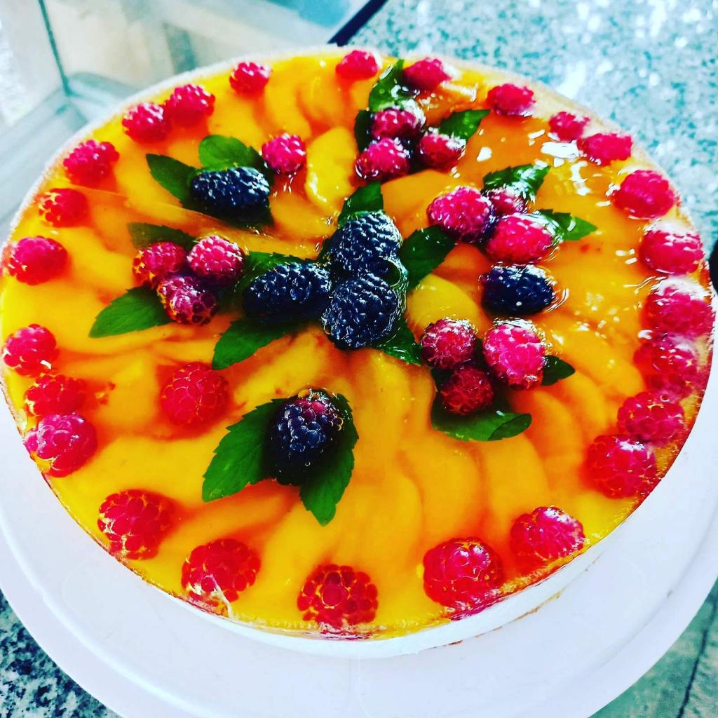 Фруктовый бисквит с заварным кремом и желейной прослойкой 200 грн за 1 кг