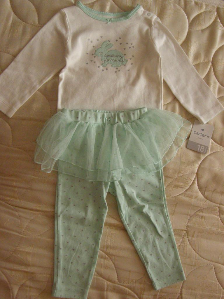 Продам костюмчик Carter's на 18 мес, новый с бирками 150 грн, длина бодика 45 см, длина штанишек 44 см. Цвет мятный, сердечки блестят. Очень красивый.