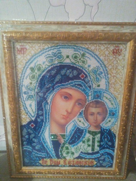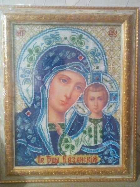 Икона ручной работы, вышита Чешским бисером и с добавлением стразов.
