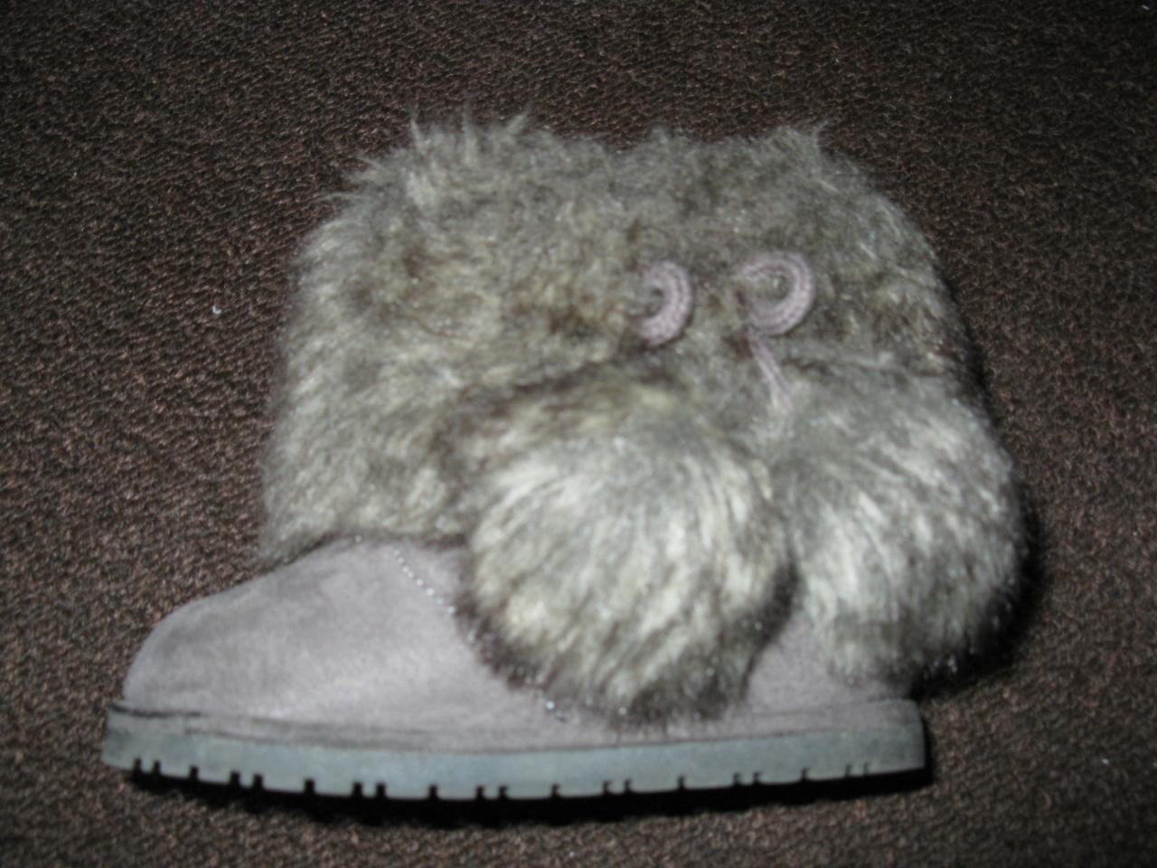 ID:	8125991 Сапожки - угги "Zara", внутри мех, очень тепленькие, практически не ходили, только ездили в коляске. По бокам два болобончика, цвет серый, р. 20 по стельке 11-12 см. Цена 100 грн.