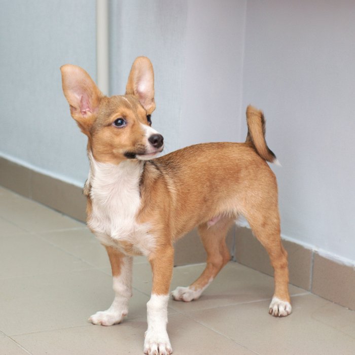 Я нашла отдаленное сходство с корги, муж сказал, что собачка смахивает на степную лису фенека. Уши у парня действительно знатные
