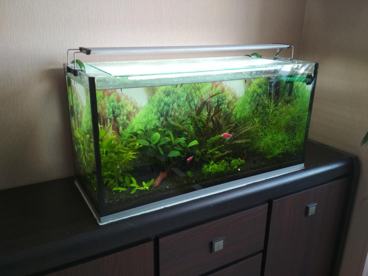 Продам аквариум 80*30*40см. стекло 8мм. --450 гр. Пустая банка с задним фоном. На фото какой он был в эксплуатации тел. 0634664299