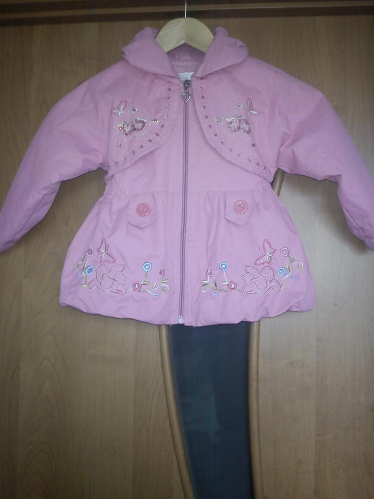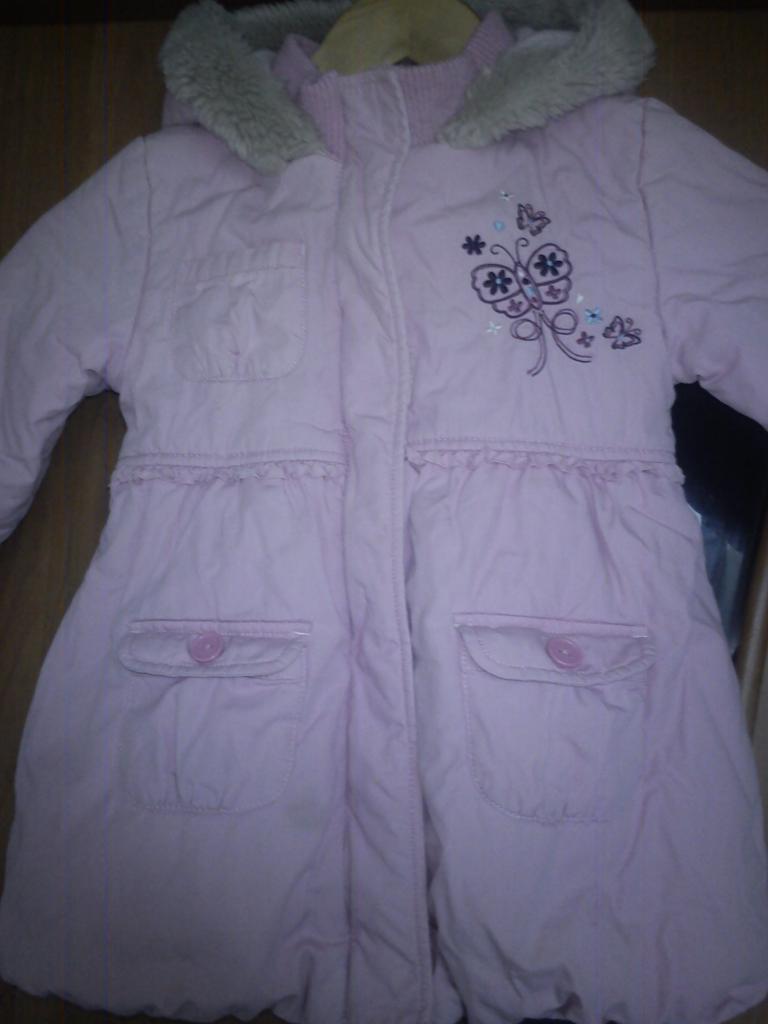 1.Пальто розовое с капюшоном(мех искуств.)(весна-осень)рукав 39 см.,спинка 47 см. цена-60 грн.(есть фото на модельке)
