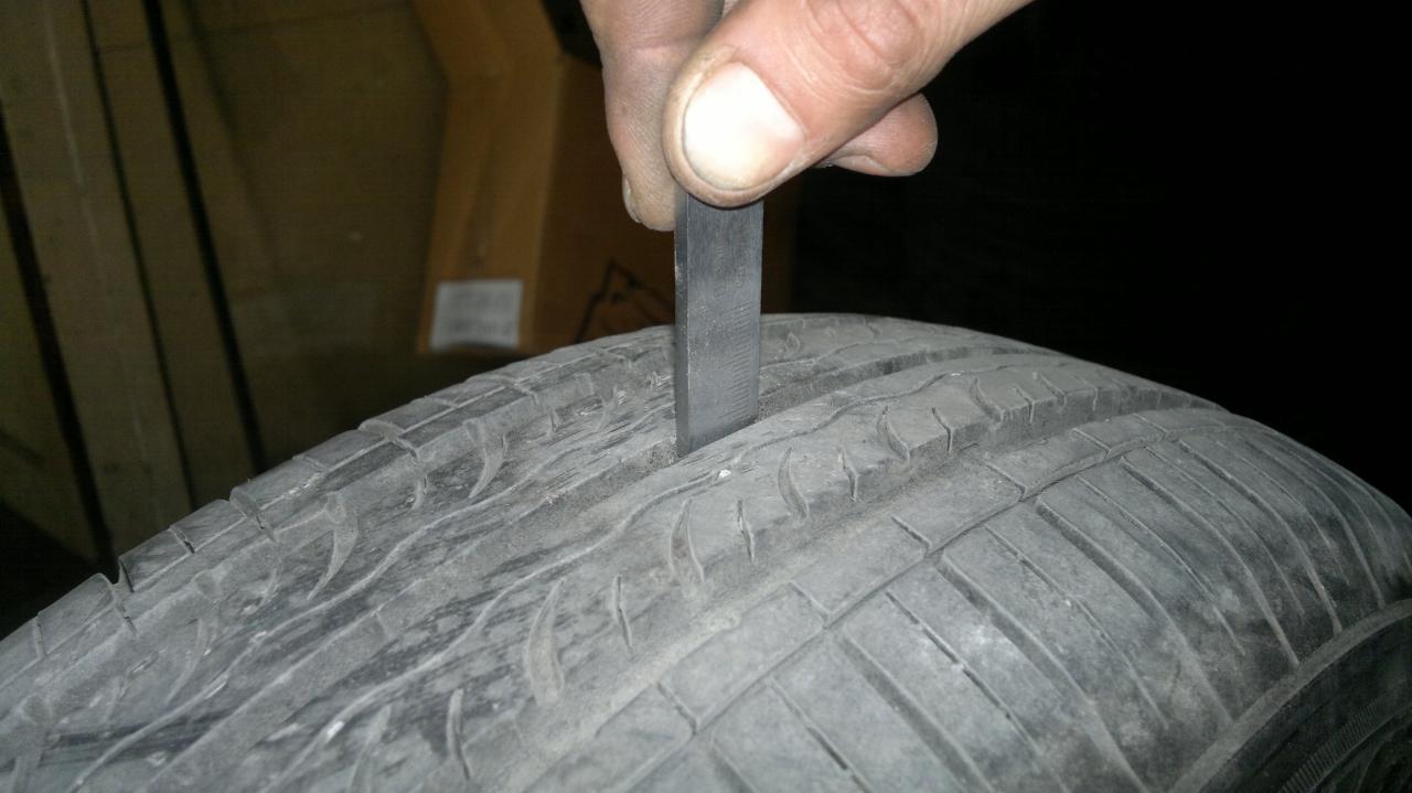 Во-вторых:два колеса с нормальным протектором, а два с сильно изношеным протектором.