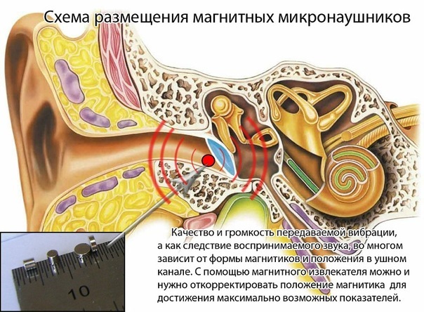 Магнитный микронаушник помещаются в ухо на барабанную перепонку.