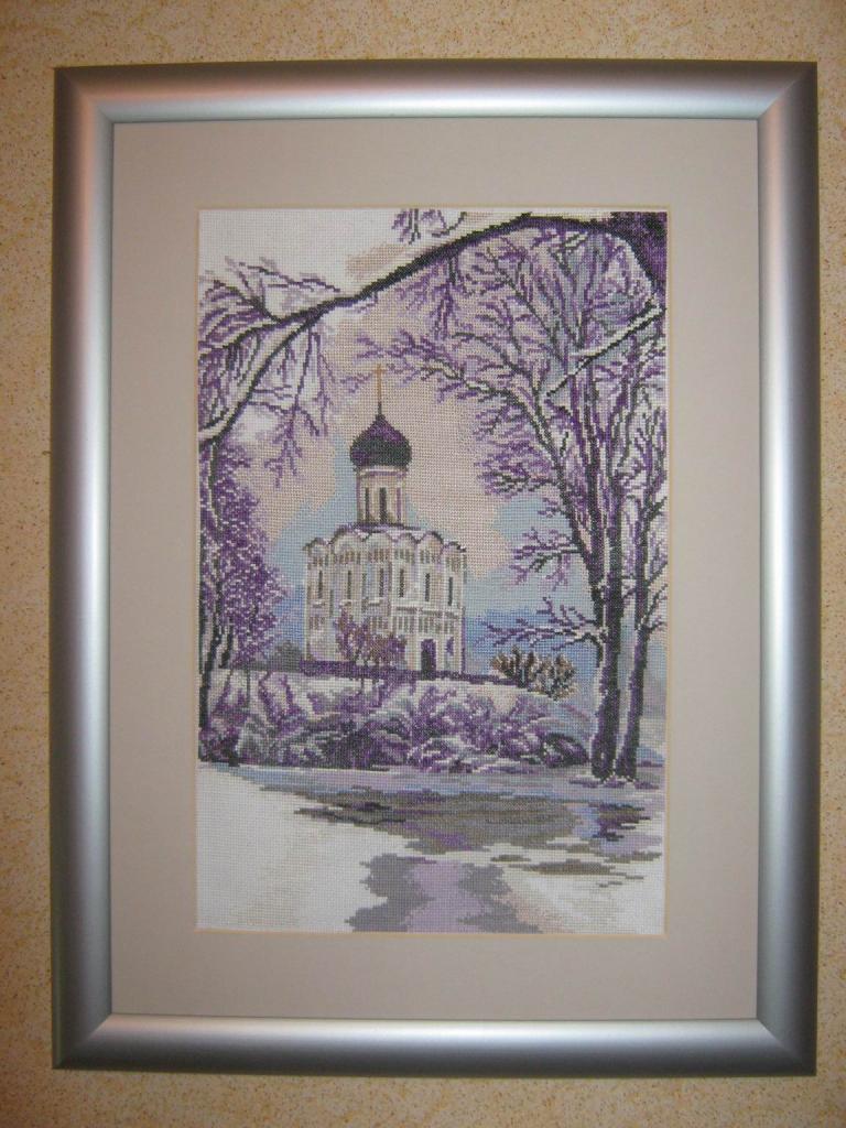 Работа выполнена на ткани Хардангер двумя техниками, фон и ризы - большой счётный крест, лики - маленький крест.