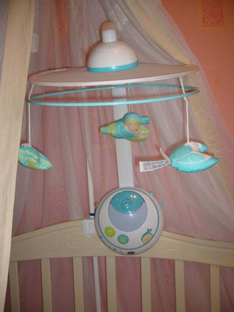 Мобиль в идеальном состоянии, без царапин, игрушки целые, ребенок их даже не трогал, так как не доставал до них в кроватке. Пульт новый, мы им не пользовались. Цена 550. Телефон: 0505536363, 7992733. Оля.