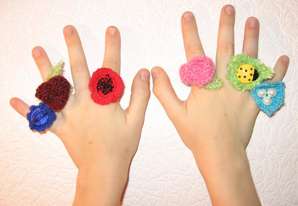 Выполнены из разных материалов - шерсть, хлопок, акрил, различные бусины...