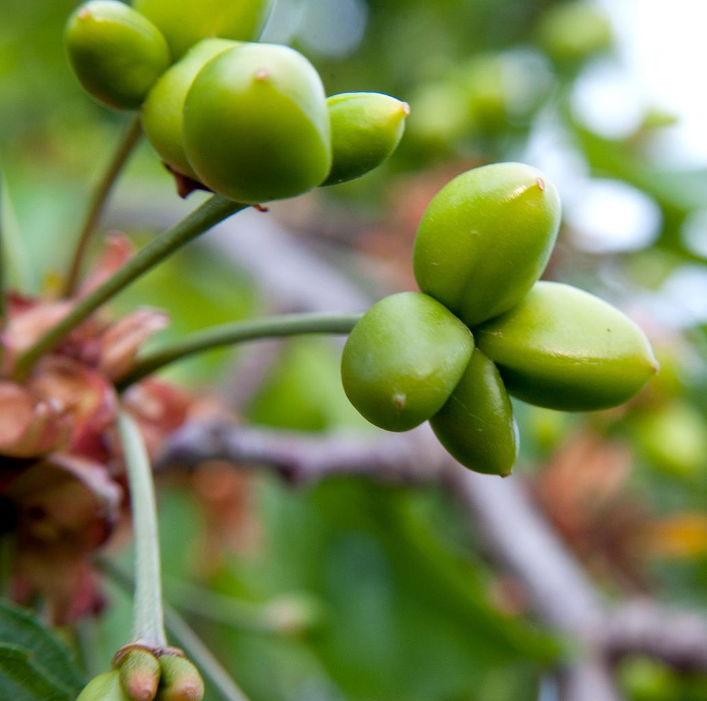 К моему удивлению я обнаружил что 50 % плодов на дереве обладают такой аномалией. На одной плодоножке сформировались по два плода.