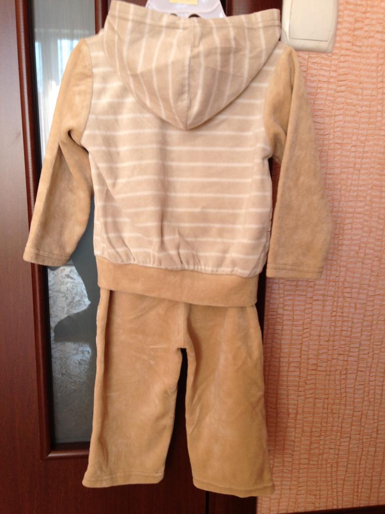 2) Бежевый костюм велюровый, весна/осень, 12-18 мес, длина куртки 32 см, рукав 28 см, штанишки 42 см, 50 грн.