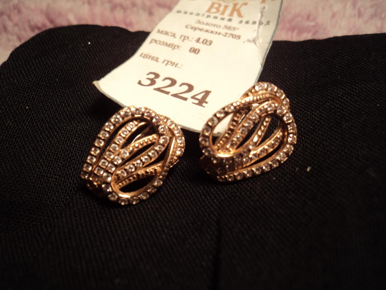 Продам золотые сережки, покапала в Золотом Веке на Дерибасовской за 3224грн, 4, 03 грамма, отдаю за 1950 грн! 585 проба. Находятся на Таирово.