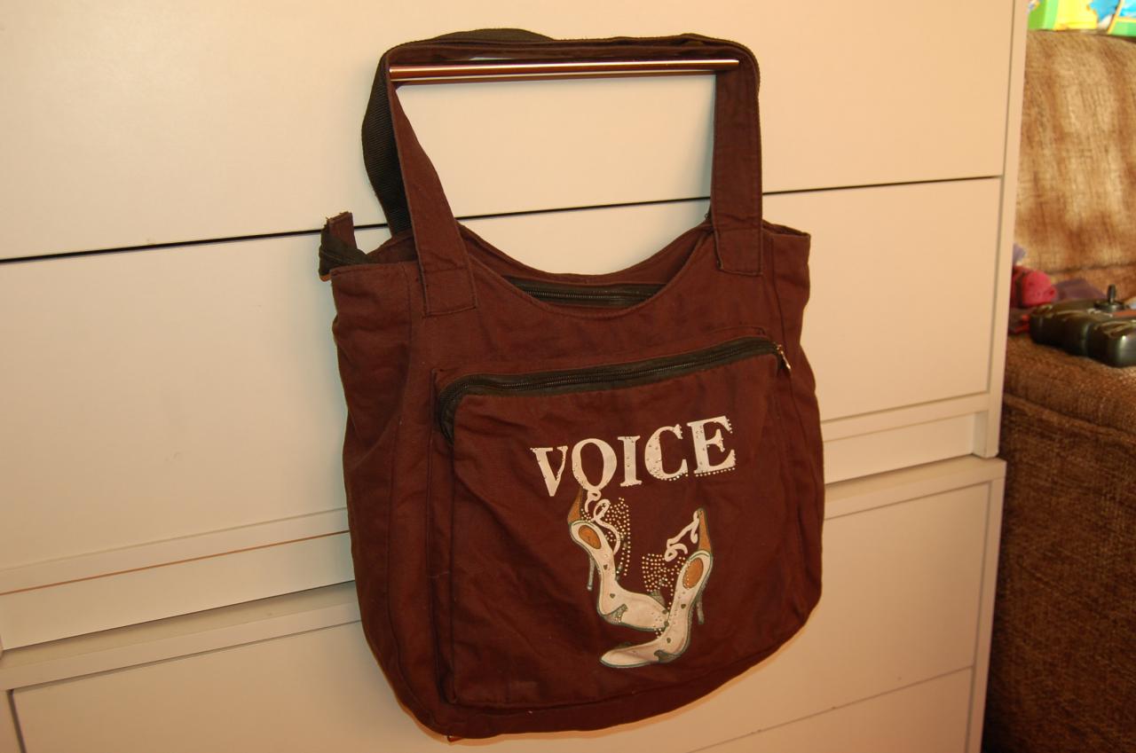 Котоновая сумка Voice. Цвет тёмно-коричневый, близко к чёрному. Р. 43Х30см. В хорошем состоянии. Цена 30грн.