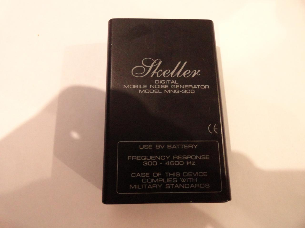 MNG-300 Skeller Мобильный цифровой генератор шума. Ухудшает качество записи на диктофон на 80-90% без возможности шумоочистки, зашумляет микрофоны, стетоскопы (в т.ч. оконные). Полоса частот 300 - 4600 кГц. Имеет регулировку и индикацию уровня. Питается от 9В цена :1000 гр. торг http://www.youtube.com/watch?v=GYcwarIPq3Y