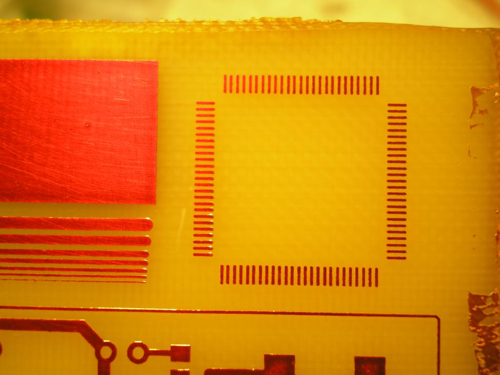 Далее открыл для себя ЛУТ. Скажу сразу, качеством был поражен. Особенно учитывая, что тогда паял только микрухи в дип-корпусах, и резисторы с конденсаторами выводные. Когда же перешел на SMD комплектующие, то понял, что и ЛУТ не спасет. Платы для микросхем в SOIC и тп еще нормально получались, но хорошие дорожки менее 0,4-0,3 мм я так и не получил. Да и не было 100% результата, иногда приходилось маркером дорисовывать. А тут еще и понадобилось делать девайсы в корпусах типа SSOP и тп, с шагом выводов 0,5-0,6 мм.