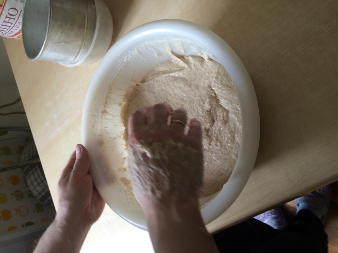 Перед тем как раскладывать в формы, не забудьте отложить кусочек теста на следящую выпечку. Это и будет ваша закваска. В холодильнике она может стоять до двух недель без подкормки.