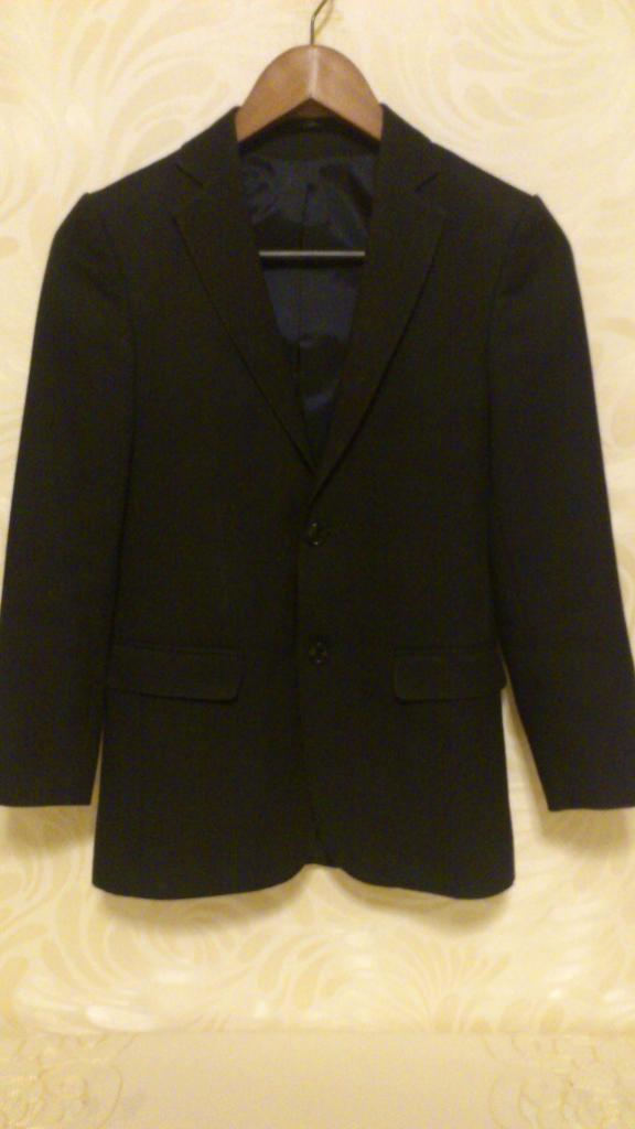 1. Костюм, состоящий из пиджака и брюк, песочного цвета. Указан наш размер на бирке - 32. Размер 128, возраст 7-9 лет. В отличном состоянии. Длина рукава пиджака от плеча - 47 см, длина брюк 77 см, объем 60 см. Для худенького мальчика. Состав ткани не указан, ткань на ощупь натуральная, костюм качественный.