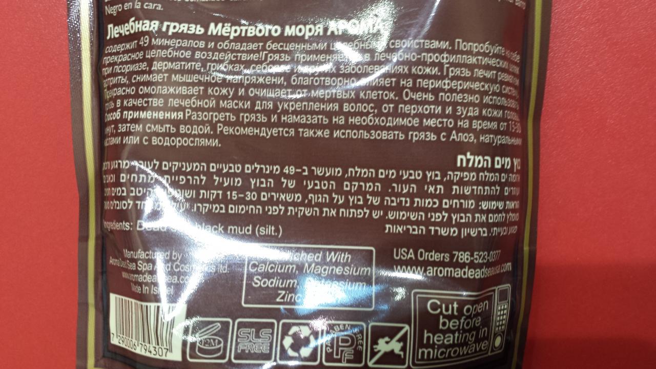 Грязь Мертвого моря обладает терапевтическими и косметическими свойствами. Она заживляет раны, снимает мышечное напряжение, борется с целлюлитом, укрепляет корни волос и устраняет себорею и перхоть. Нормализует все функции кожи, глубоко очищает ее от шлаков, токсинов и омертвевших клеток, улучшая обмен веществ и стимулируя кровообращение.