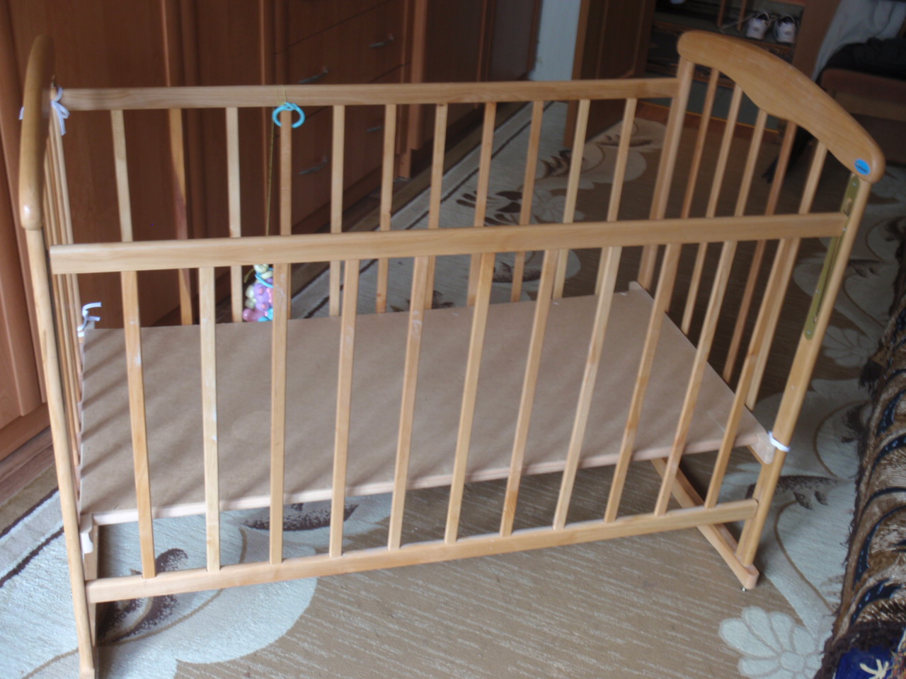 Продам детскую кроватку с матрацем. Состояние хорошее, но колеса внизу сняты (сломались), для устойчивости ввернул шурупы. Боковая стенка снимается. Цена 300 грн за все.